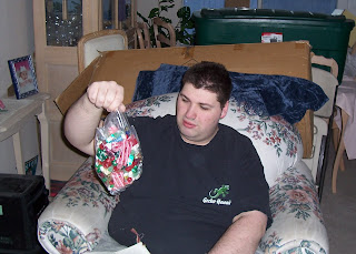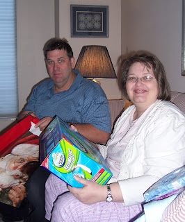 Christmas Morning Pictures….Rosie got her Orange Sweater from Santa!!! Mom got her automatic scrubbing bubbles shower cleaner, and dad got his Zune dock. I got an Ipod dock alarm clock and new satin pajamas. I gave Mary some CDs and Shawn displays how much candy that Santa leaves in in the Watson stockings. A few Christmas eve pictures follow.