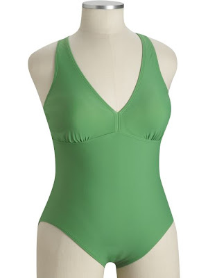 Since bright green is my favorite color, I decided to start a weekly blog post (much like blogger friend’s Wednesday Giggles, Friday Fluff, Morning Wood and Street-Urchin blogging, etc…) Mine will be Thursday Green (’cause you know what they saw about people that wear green on a Thursday???) It will either be about something green in color, or a post about my rockstar money-saving bargain-skillz. Today my new swimsuit came in the mail. I buy a new swimsuit every year in the spring…I’ve always loved to swim, and last years suit is SO stretched out, snagged and ugly from all my water aerobics. It fits like a halter suit with criss-cross straps in back. Perfect for athletic swimming. It’s also nice to have a suit that is plus size, but isn’t a swim dress. This suit is an update from the one I got last year…it fits nicely under shorts when going to the beach. I bought it from OldNavy.com. It was $40…could be worse.
