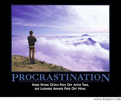 Part of the reason I’m having a hard time focusing is that I can’t submit my current assignment until my prior one is graded (I turned it in 4 days ago, and it’s still not graded). But I can’t turn in my final paper until the current assignment is graded. There’s such a time crunch, but my current assignment requires feedback from the last one. So it’s a bit of a waiting game, but I’m hurried at the same time. The joys of online classes. *sigh*