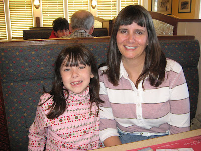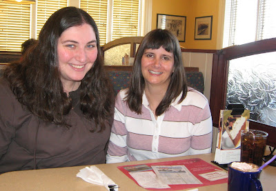 We tried to meet at Cavanaugh’s Irish pub, but they weren’t serving food yet. We settled on a Bob Evans’ around the corner. We chatted and ate for about an hour. The funniest part for me is that she had the same haircut as Rosie! (long dark layers with bangs)