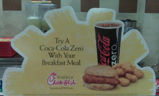 Tonight we had Chick-fil-A for dinner to use up our free sandwich coupons from the CFA calendar. I love the signage that CFA uses, and this was my favorite sign of the day: Try a Coca-Cola Zero with your Breakfast Meal. I laughed because when I DO have a breakfast meal, I typically choose Coke Zero or Dr. Pepper. I don’t drink coffee, but I do get my caffiene fix! On the way out, the sign was advertising their catering services : Good for holidays, and any day that ends in Y. (Get it? All days of the week end in Y)