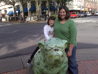 UGA’s mascot is the bulldog, and all through Athens you will see a variety of painted bulldogs for decoration. This one matched my shirt, and Rosie and I used it as a photo op.