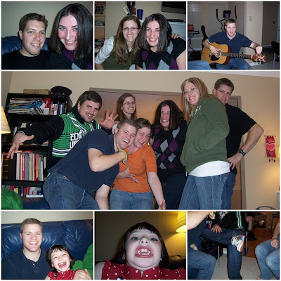 Last night was my big (little) birthday bash. It was an evening of friends new and old: high school friend, old roommates and pilot buddies. Taylor made his fabulous fajitas, and we celebrated with chocolate fudge fantasy cake. I was serenaded by Clint on his new single in production (and I say that a loosely as possible) Rosie took lots of funny pictures. We ended the night watching my favorite movie, Better off Dead, with a bunch of people who can quote the movie as well as I can. A fun evening, and a great way to usher in the last year of my twenties.