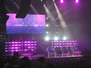 Last night was the NKOTB concert in Greenville. I went with Rosie and my friend Mariesa. We stopped by Five Guys for dinner on the way there. We completely missed the opening act, but we’d never heard of the band either. When we walked in, they upgraded our seats from first row balcony to lower bowl. The show was similar to the one in Detroit (the opening set was different) and we had better seats. It was fun having an adult friend come with me…one who remembered the glory days of Jordan, Joe, Donnie, Danny and Jon. Rosie got her gigantic NKOTB button that she paid for with a gigantic handful of ones and change. She also decided that Donnie is her favorite New Kid…which I hope doesn’t mean she’ll go for the rappin’ bad boy types of boyfriends in the future. If you don’t want to wait for my picture mega-post, feel free to look at the album on Facebook.