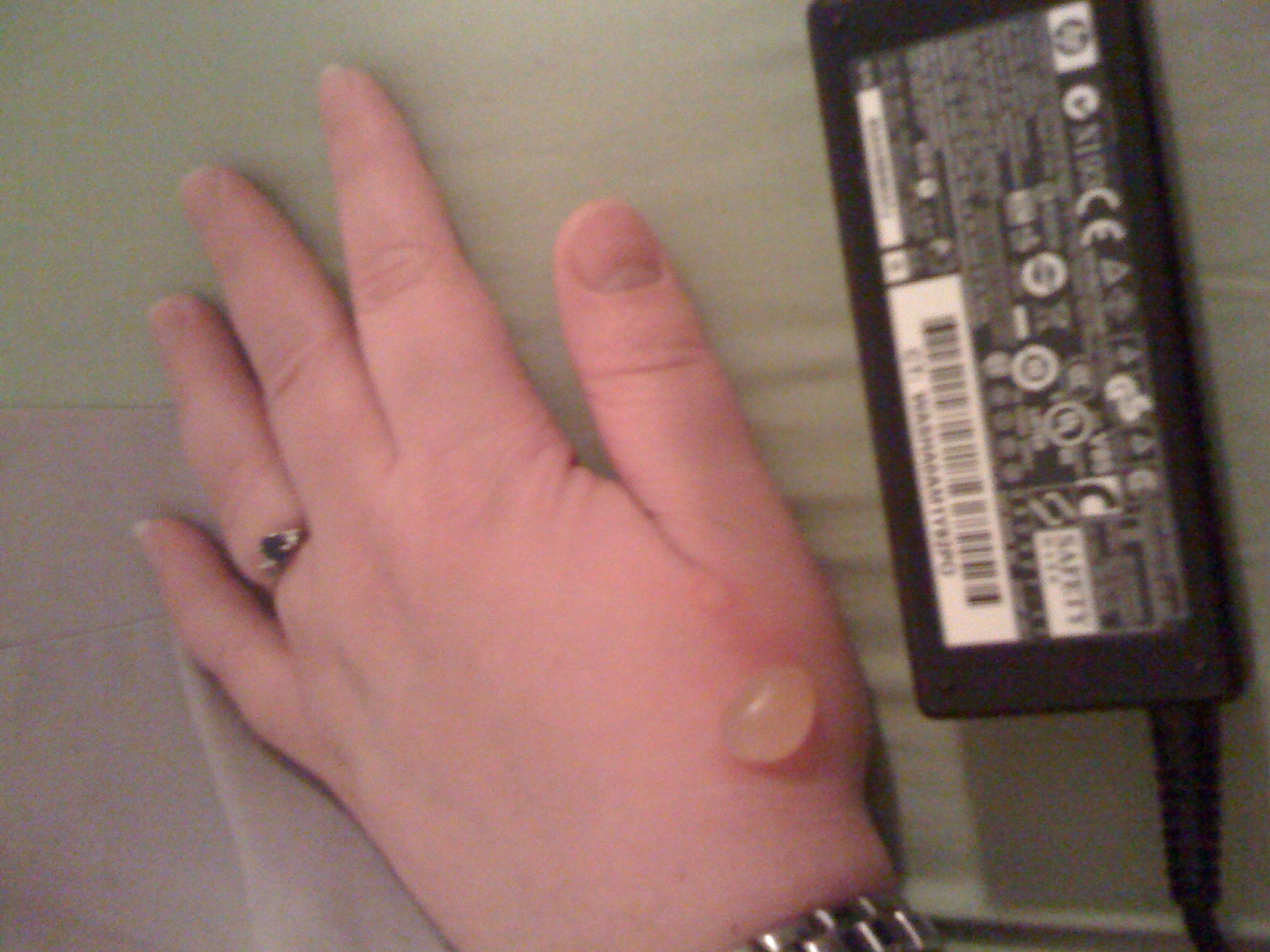 I am guilty for spending hours in bed with my laptop. And pretty often, I fall asleep with my laptop on my bed. Usually, the computer will go into standby mode after 30 minutes of inactivity. When I woke up this morning, I was shocked to see this huge blister on my hand: