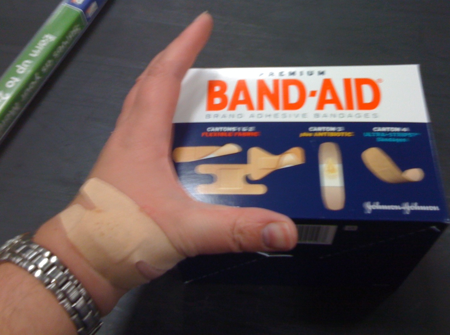 I went to my doctors’ office, and confirmed that it was indeed a 2nd 3rd degree burn. I was told to lance the fluid when the swelling got too intense, slather it often in ointment, and keep it covered. It was so oozy that I went through a box of my Band-aids at home within 2 hours. So I headed to Sam’s Club for a bulk box of Band-aids.