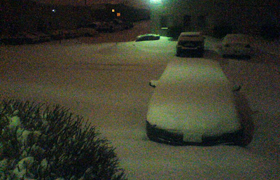 I looked out the window this morning around 5:30, knowing that there was a snow storm overnight. Apparently, we got about 3 inches of snow, then an inch of ice, covered by another 4 inches of snow. School’s already canceled. Looks like it’s soup, hot tea, and movies for Rosie and I today!