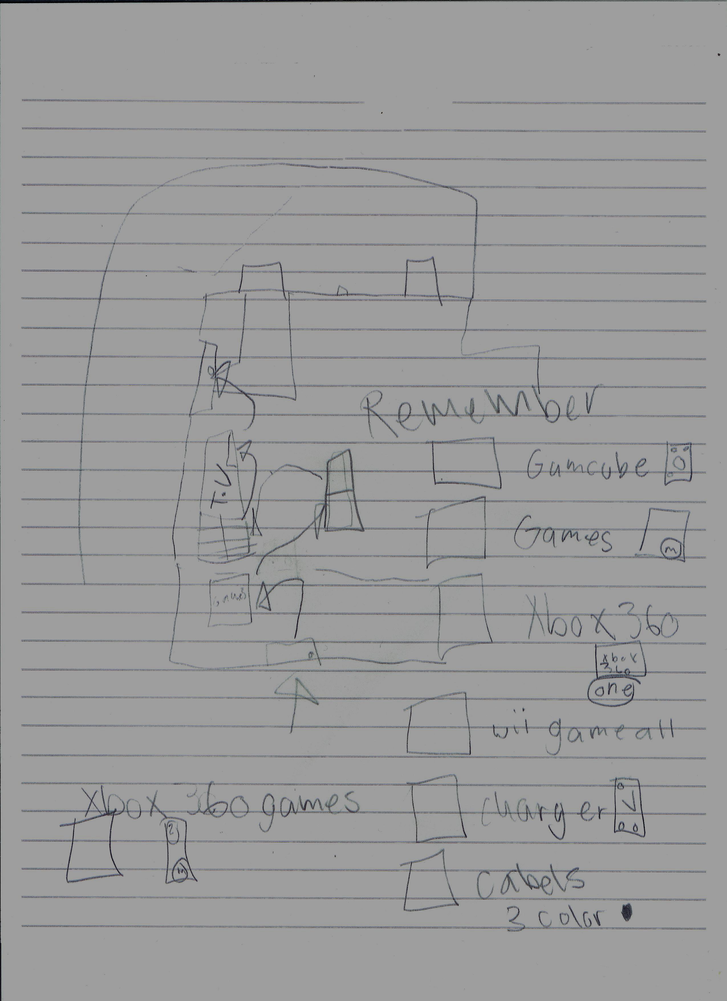 Rosie and I spent a few days away from home this weekend. When we arrived home and walked into the house last night, most of our electronics were out of place. Components were detached from cables, games and movies were mixed up and thrown into places we never put them, and an XBOX 360 was sitting in the middle of the room. Our sliding glass door was slightly open, and a very strange note was on the floor: