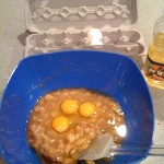 2. Add in eggs and vegetable oil. Mix well, but do not overstir.
