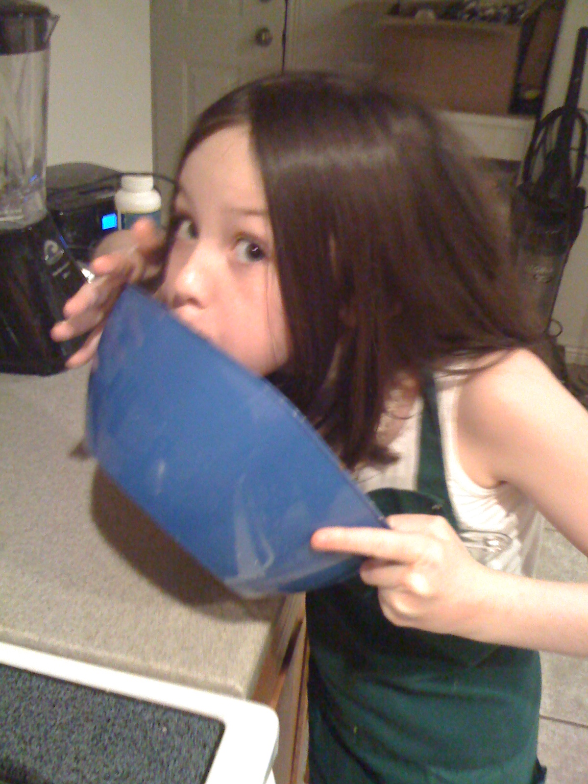 Rosie licking bowl